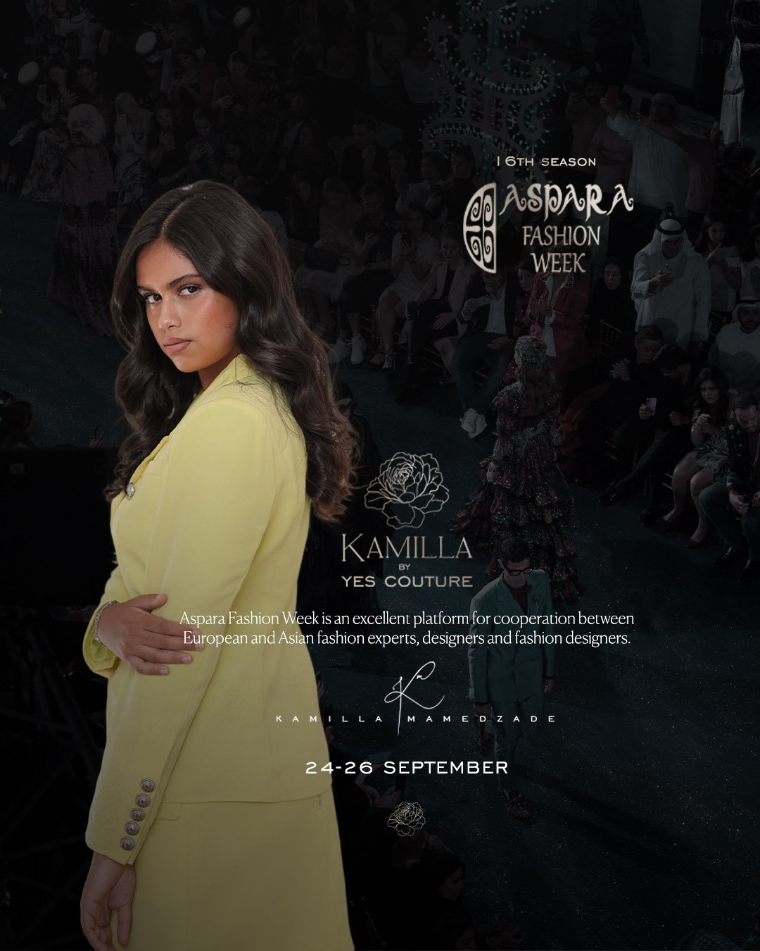 Young talented Azerbaijani fashion designer Kamila Mammadzade will perform on the digital catwalk with her brand Kamila by Yes Couture at the 16th season of ASPARA Fashion Week, which will be held online in Taraz, Kazakhstan, from September 23 to 25.